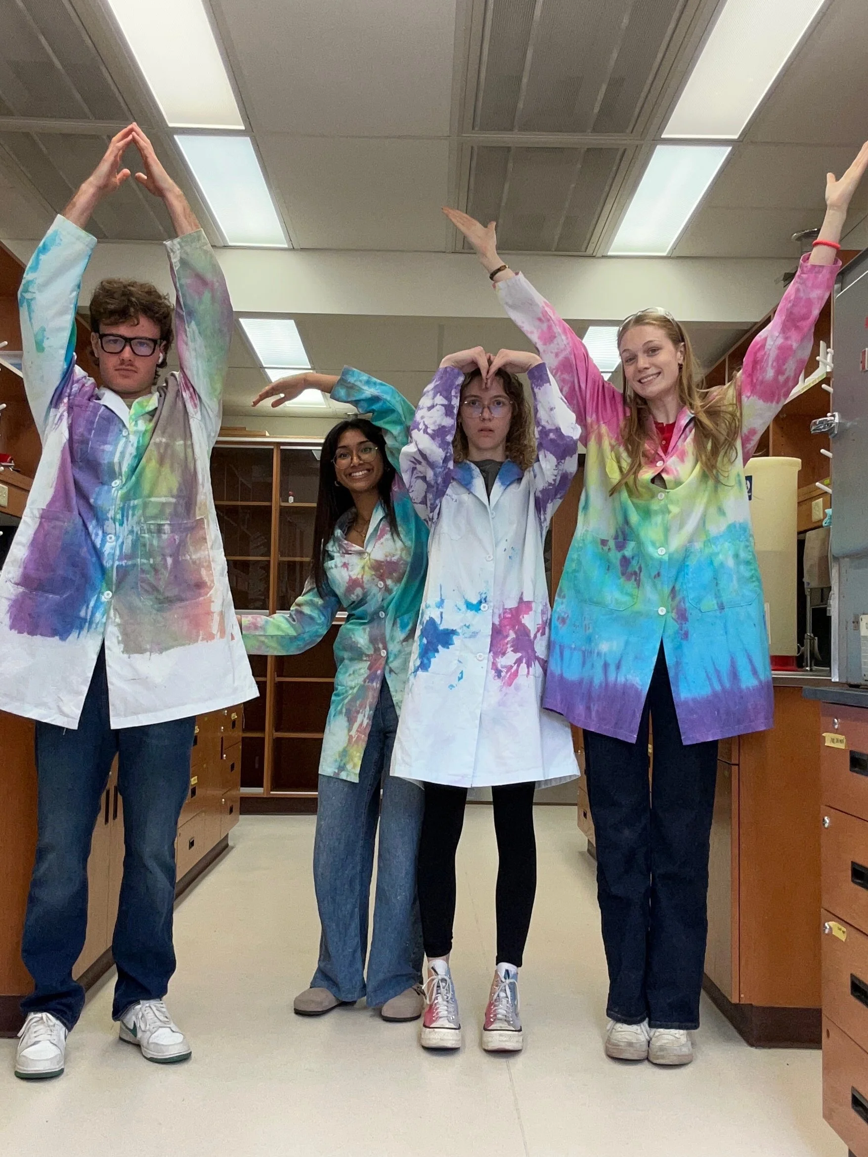 The Roberts Lab welcomes its first cohort of undergraduate researchers with a tie dye extravaganza. Read more about our team here.